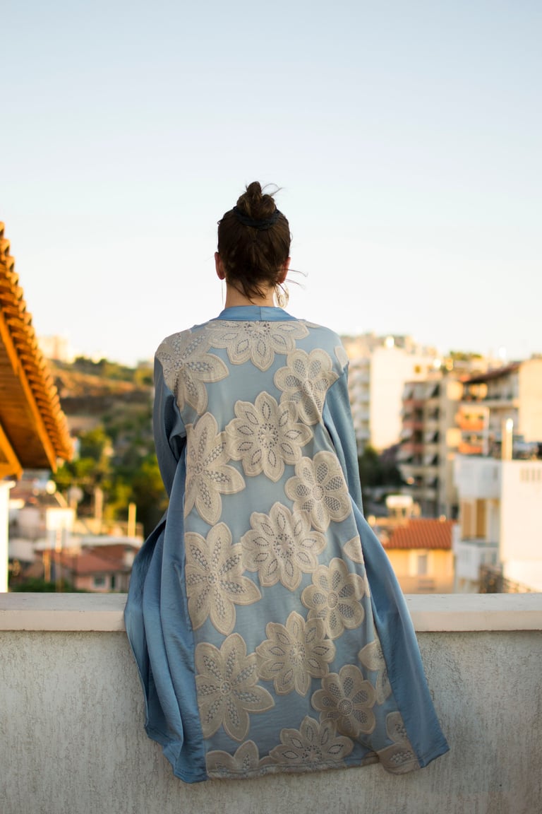 - Light blue & sheer details kimono