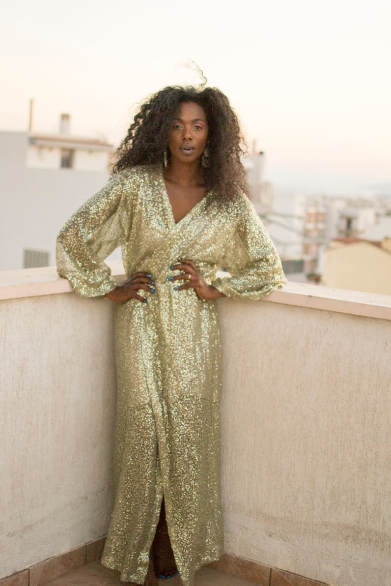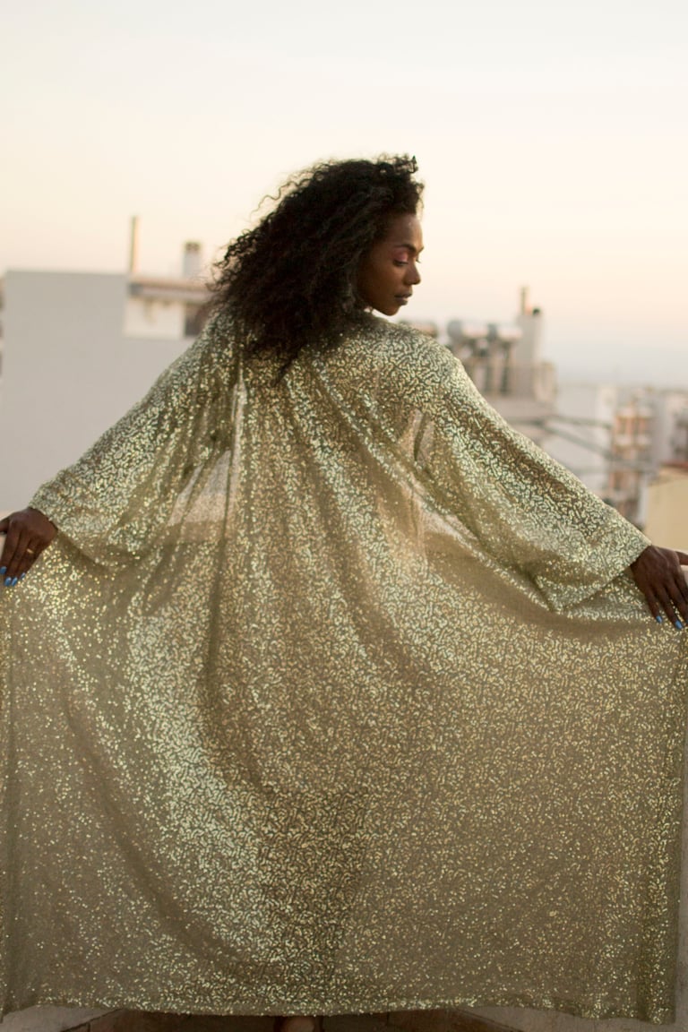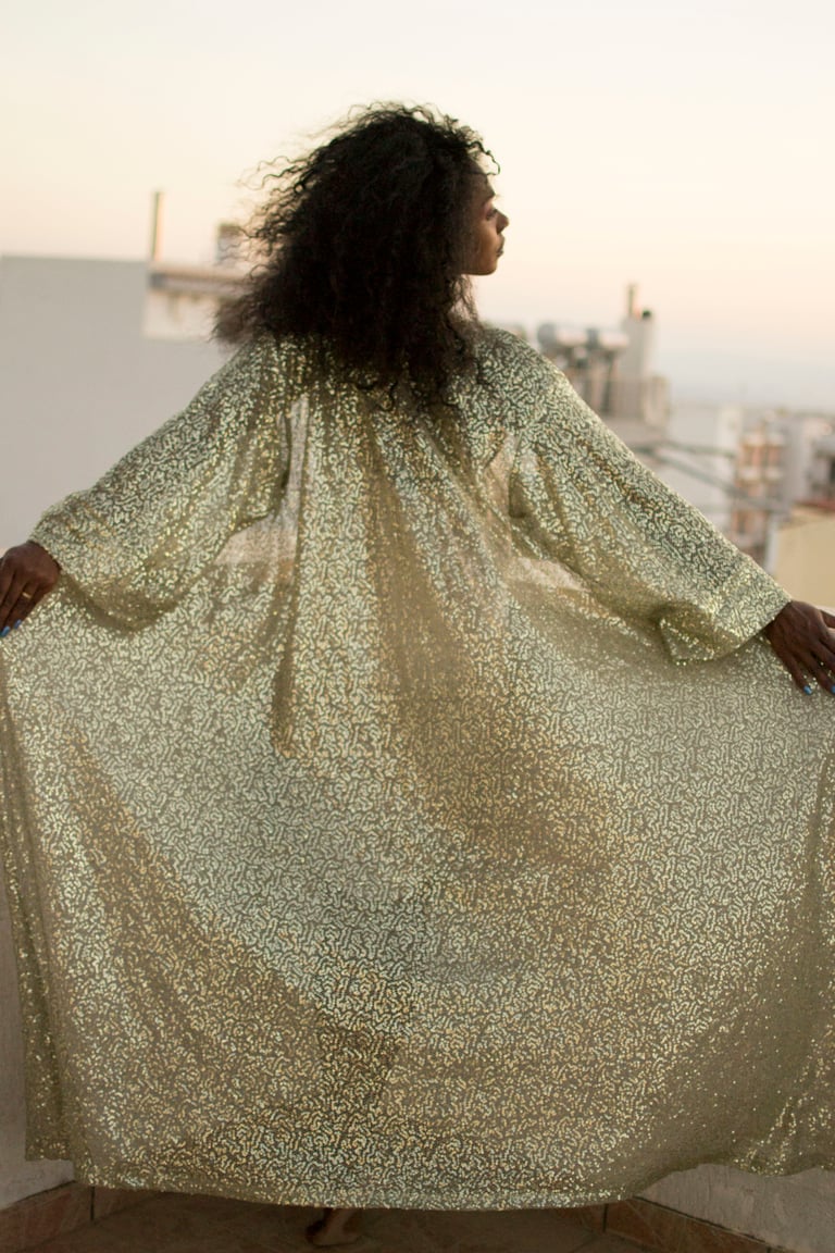 -Olive green & gold sequins kimono