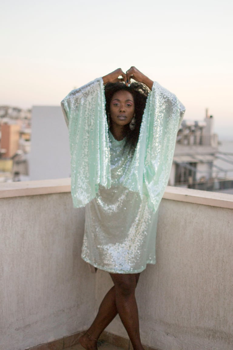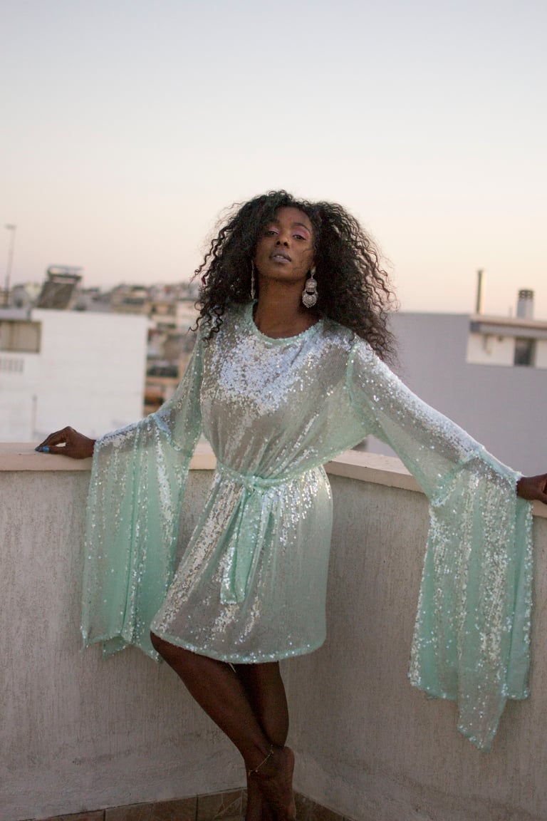 - Mint sequin dress